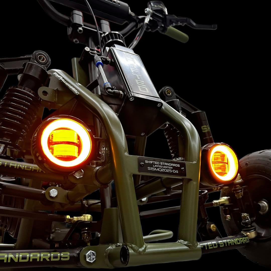 Experience power, speed, and style with the Army Green Electric Quad. This sleek, white-coated mini quad is designed for riders who crave off-road excitement. Built and shipped from Houston, TX, every quad guarantees quality and durability.
