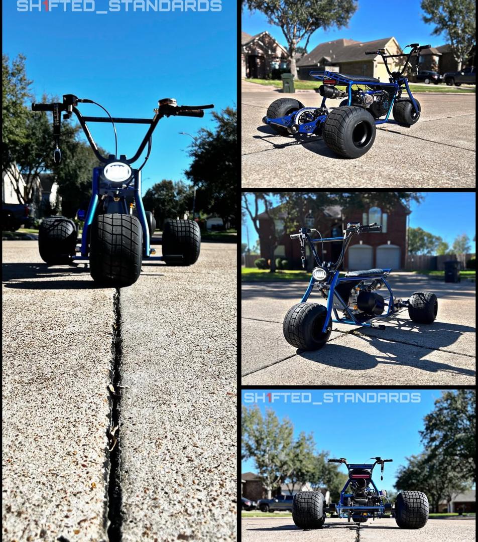 The RCF Blue Mini Trike delivers power, speed, and custom design for riders who want the ultimate mini trike experience. Secure yours today and enjoy a fully built, ready-to-ride machine without the long wait.