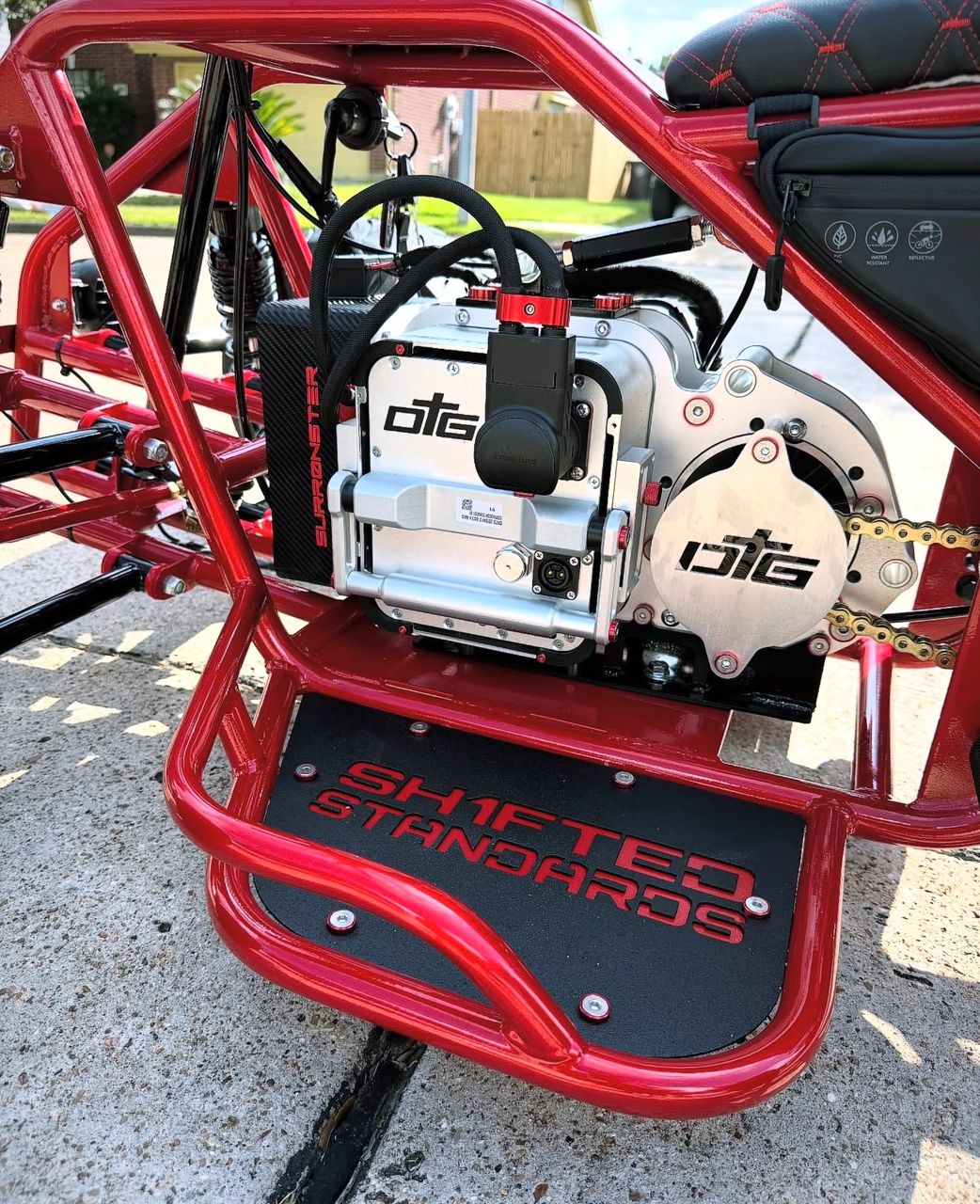 Introducing the Ronster Red Electric Mini Quad, a precision-built performance machine engineered for riders who want serious power, premium craftsmanship, and bold road presence. Built on a custom Shifted Standards performance frame and powered by the advanced DTA PowerPlant, this electric quad delivers instant torque, smooth acceleration, and dependable all-electric performance.